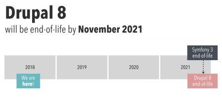 一方、Drupal 8 からDrupal 9 へのバージョンアップは比較的容易だという話です。 Drupal 9 がリリースされてから 移行する。というのも 一つの考えですが、Drupal 9 が(Contribute moduleも含め)安定してから 移行するとなると 大規模なサイトでは時間が足りない可能性があります。